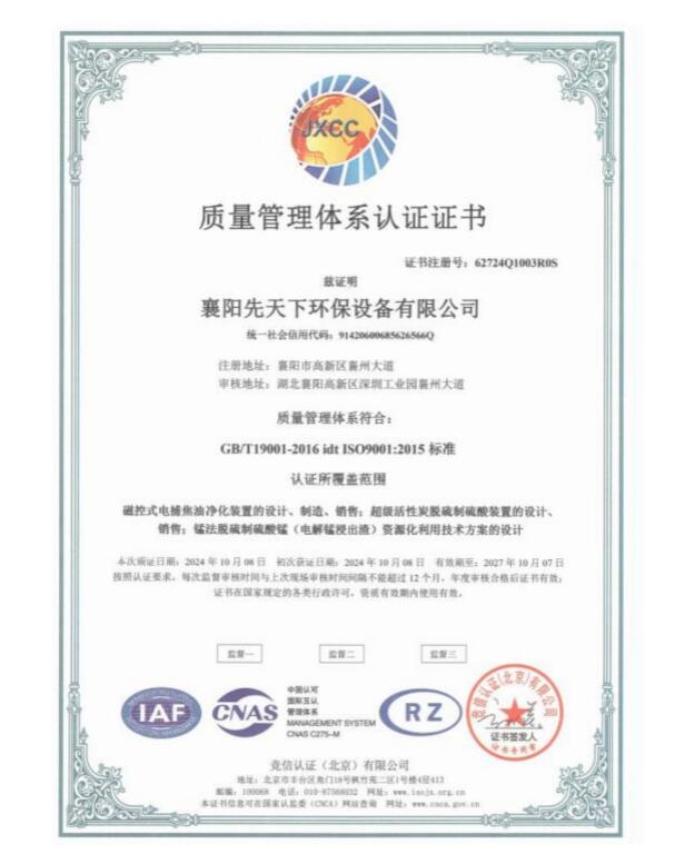 所属分类:荣誉资质 发布时间: 2025-11-03 作者:襄阳先天下环保设备有限公司